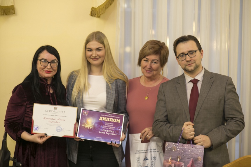 Выпускникам и участникам школы «Школы молодого предпринимателя» были вручены сертификаты и дипломы об успешном окончании обучения, а также подарки и ценные призы от организаторов и партнеров проекта – Отделение по Смоленской области ГУ Банка России по Центральному федеральному округу, Смоленское отделение № 8609 ПАО «Сбербанк», УК «Надежда - 11», ООО ГК «Хлебопродукт», ООО «БК», ООО «Эдисофт», ООО «Лалибела Кофе» и ООО АН «Импульс-К».