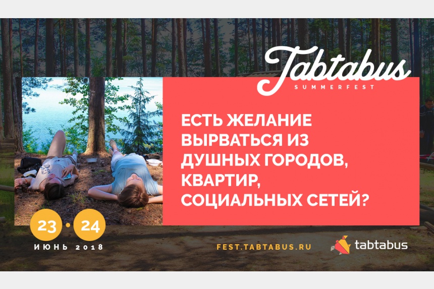 23-24 июня 2018 года Смоленщина встретит V юбилейный IT-фестиваль. Фестиваль объединит программистов, дизайнеров, технологов, менеджеров, предпринимателей и других представителей IT-сферы из России и ближнего зарубежья на V юбилейном летнем IT-фестивале Tabtabus Summer Fest.