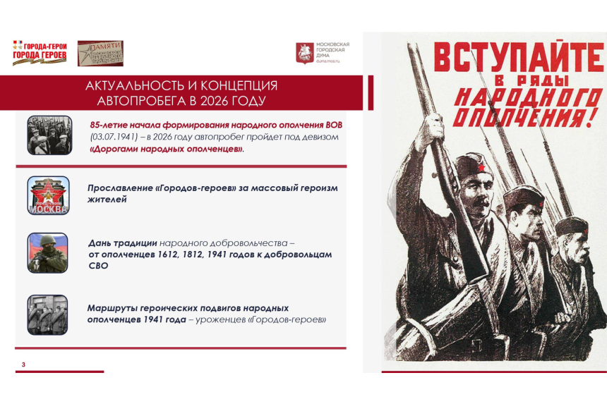 В этом году, в год 85-летия начала формирования народного ополчения Великой Отечественной войны, автопробег пройдет «Дорогами народных ополченцев».