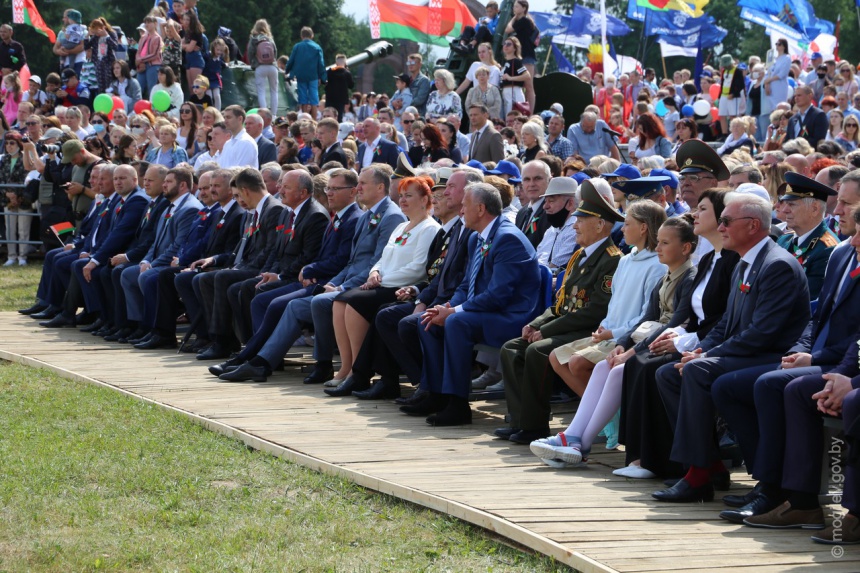 Первым праздничным мероприятием стала концертно-театрализованная программа с элементами реконструкции событий войны, посвященная 80-летию обороны Могилева от немецко-фашистских захватчиков, «Абаронцам – слава!» на мемориальном комплексе «Буйничское поле». Здесь же прошло возложение цветов и венков к каплице и мемориальному валуну писателя и журналиста Константина Симонова, а также выставка военной техники Вооруженных Сил Республики Беларусь. Затем в городской Ратуше состоялся официальный прием гостей города председателем Могилевского горисполкома Владимиром Цумаревым. Для горожан и гостей организованы многочисленные развлекательные площадки. Работа тематических площадок развернулась в этот день на улице Ленинской, на которой в свою очередь прошла театрализованная экскурсия «Ожившая история». Завершились праздничные мероприятия большим концертом «Сіла Радзімы — у адзінстве народа!», общереспубликанской акцией «Споем гимн вместе» и красочным фейерверком над вечерним Могилевом.