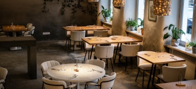 Дизайн выдержан в спокойных тонах с использованием природных материалов. Гастрономическая концепция ресторана определяется как «Русский фьюжн» - локальные продукты с использованием кулинарных техник разных стран. При ресторане есть большая летняя веранда с видом на крепостную стену.