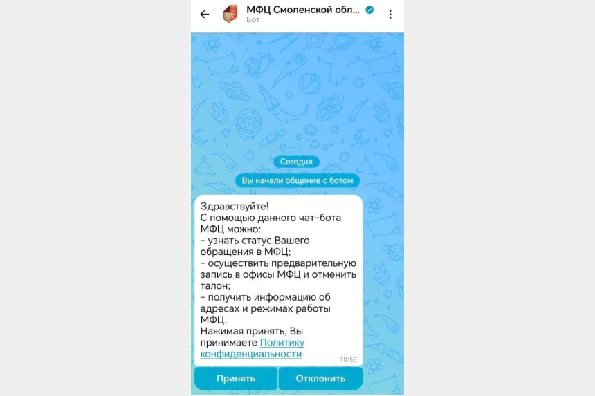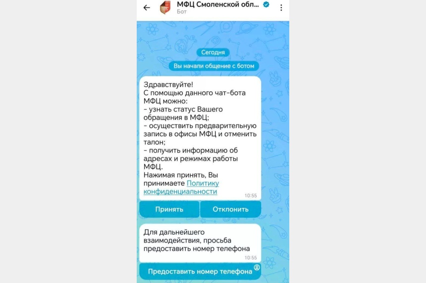 Для удобства заявителей в МФЦ Смоленской области функционируют различные цифровые сервисы. Среди них — чат-бот МФЦ Смоленской области в национальном мессенджере МАХ.
