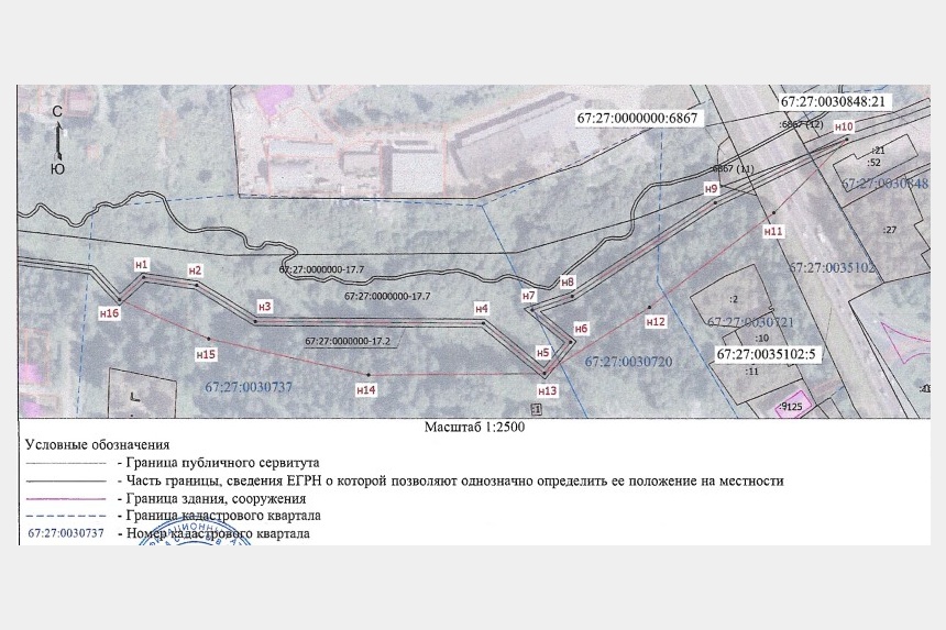 И земель, государственная собственность на которые не разграничена, расположенных в границах кадастровых кварталов: 67:27:0030737, 67:27:0030720, 67:27:0030721, указанных на прилагаемом к ходатайству графическом описании местоположения границ публичного сервитута в целях размещения объекта коммунального обслуживания.
