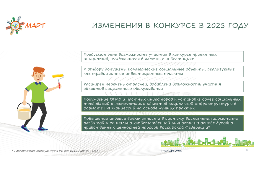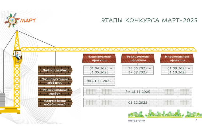 Подробная информация о категориях проектов, этапах и сроках проведения конкурса доступна на официальном сайте конкурса «МАРТ»: https://mart.promo и в официальном Телеграм-канале: https://t.me/mart_promo.