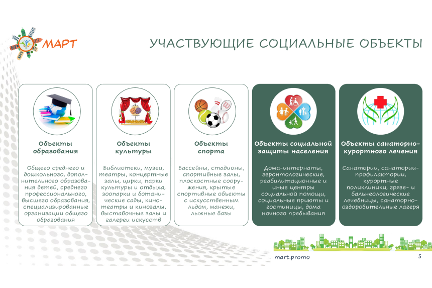 Муниципальным бюджетным учреждениям социальной инфраструктуры, находящимся на территории города Смоленска в сферах образования, культуры, спорта, социальной защиты населения и санаторно-курортного лечения, предлагается принять участие во внеконкурсном этапе конкурса «МАРТ» в 2025 году.