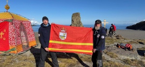Известный путешественник Фёдор Конюхов доставил торжественно переданные ему флаги города и региона на остров Смоленск