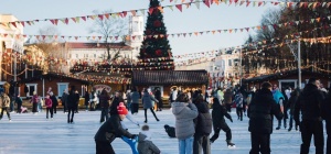 Рядом с катком продолжает работать ярмарка смоленских мастеров, где можно приобрести уникальные сувениры и подарки