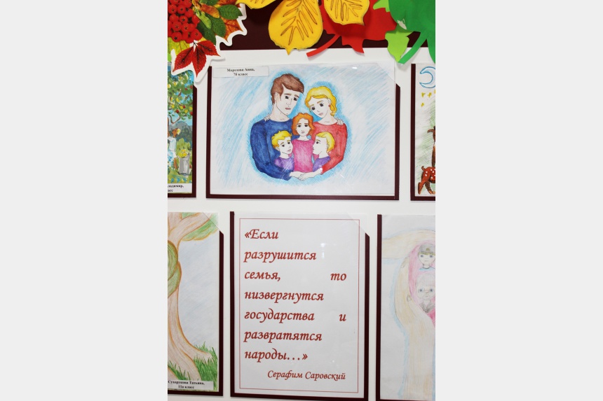 Перед началом диспута школьники и педагоги ознакомились с выставкой рисунков и поделок на тему семьи, созданных детьми и их родителями. Эпиграфом же к самому диспуту стали слова Серафима Саровского: «Если разрушится семья, то низвергнутся государства и развратятся народы».