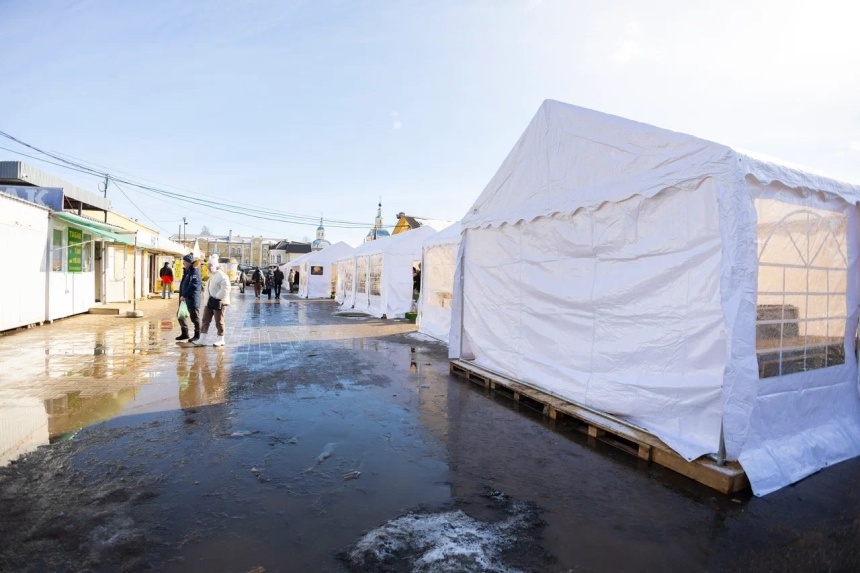 Здание рынка закрыто для проведения ремонта, но для продавцов сохранили возможность реализации товара на прилегающей территории. Торговля организована в оборудованных павильонах и специальных шатрах. Ассортимент сохранён полностью – всё, что предлагалось ранее внутри крытого рынка, сейчас доступно покупателям.