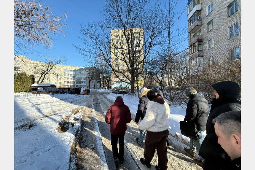 Во дворе между домами Кирова, 29Б и 29В глава города обратил внимание на пешеходную зону. Ежедневно здесь ходят десятки людей, много пожилых жителей, а дорожка от снега практически не очищена. Ходить тяжело и небезопасно. Вдобавок это зелёная зона, но туда постоянно заезжают автомобили. Александр Новиков поручил проработать вопрос ограждения и привести этот участок в порядок.