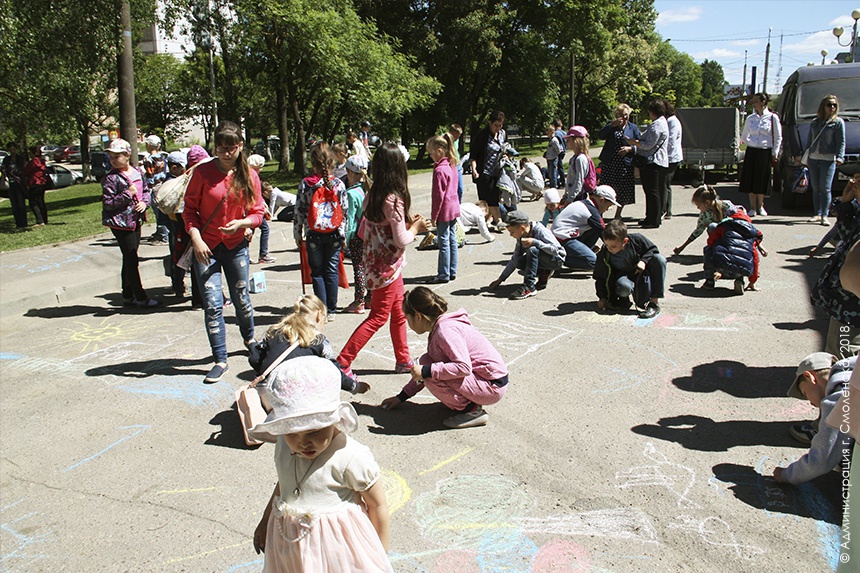 1 июня вся страна отмечала День защиты детей. Смоленск не остался в стороне. На площадке у Громовой башни состоялся традиционный детский праздник «Подари улыбку миру». Порядка 400 юных смолян приняли участие в конкурсе рисунка на асфальте. Ребята посвятили свои работы нашему городу, а также экологической теме. После конкурса всех ожидала развлекательно-игровая программа вместе с любимыми героями из сказки «Алиса в стране чудес», с участниками студии эстрадной песни танцевально-акробатического коллектива и хореографического коллектива. Кроме этого студия необычного рисования «Белая ворона» провела увлекательный мастер-класс по рисованию и дизайну.