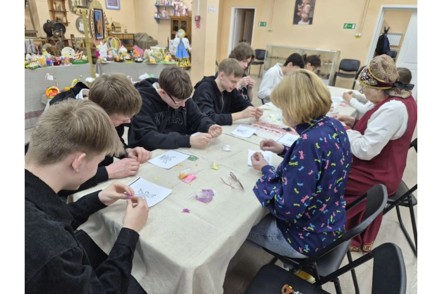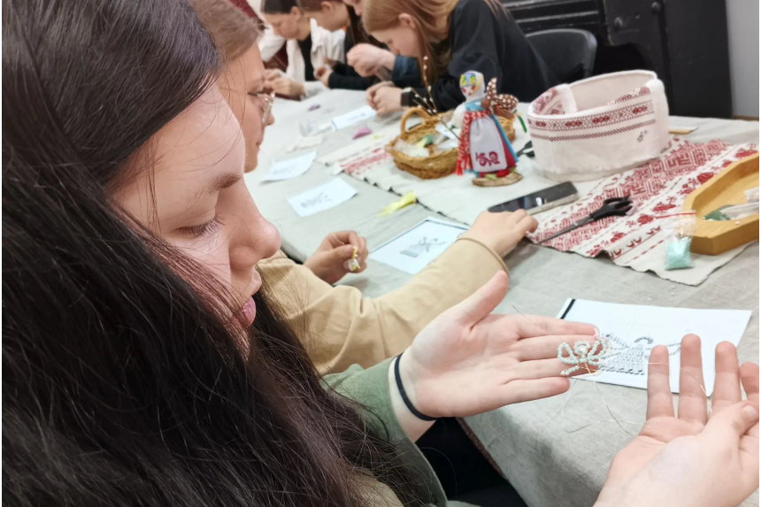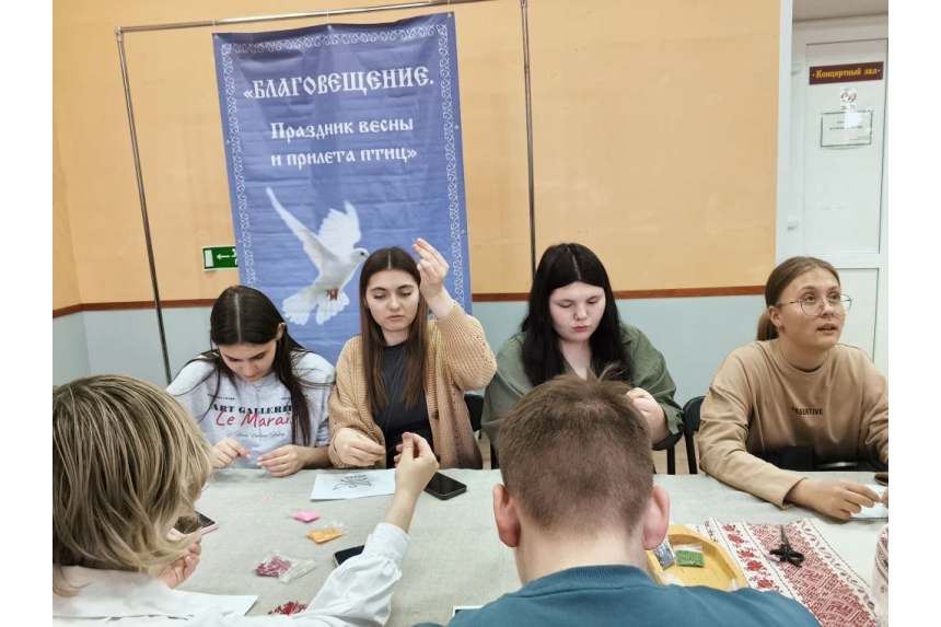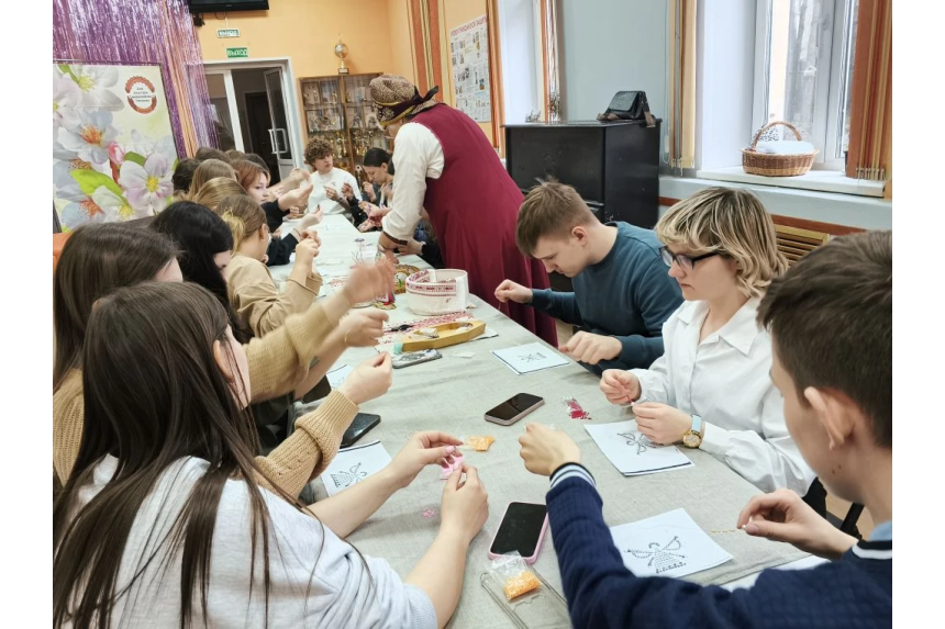 Юноши и девушки погрузились в мир творчества, создавая фигурки ангелов из бисера.