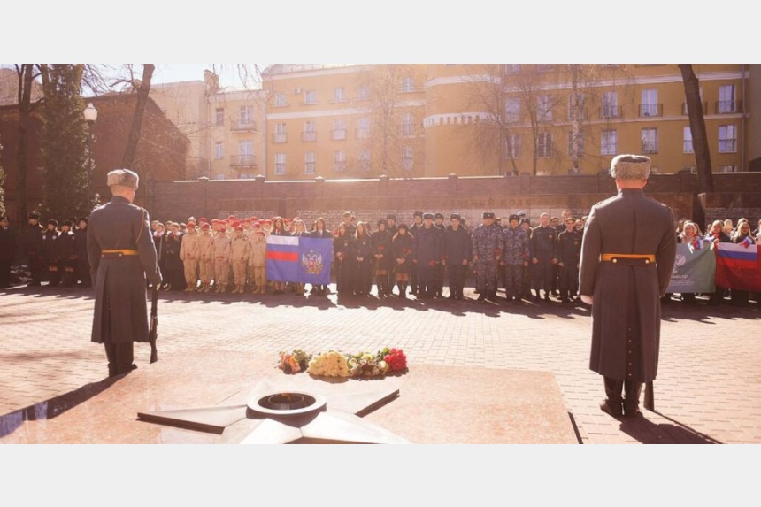 Завершилось мероприятие возложением цветов к Вечному огню и торжественным маршем почётного караула курсантов Смоленской военной академии.