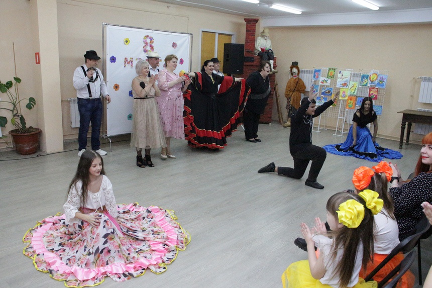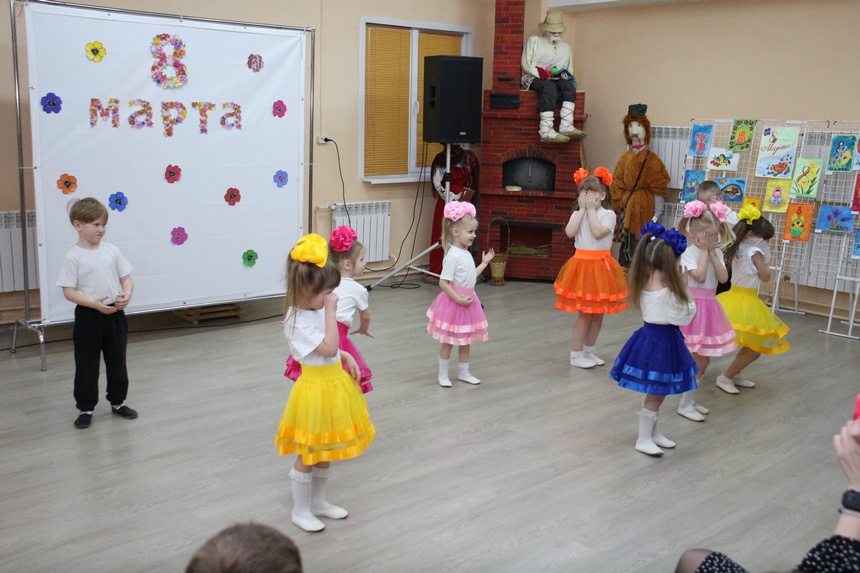 Артисты дома культуры микрорайона Гнездово, в том числе коллективы арт-группы «Крутеля» и ансамбля «Сапфир», в рамках программы, посвященной Международному женскому дню, выступили с музыкальными и хореографическими номерами.