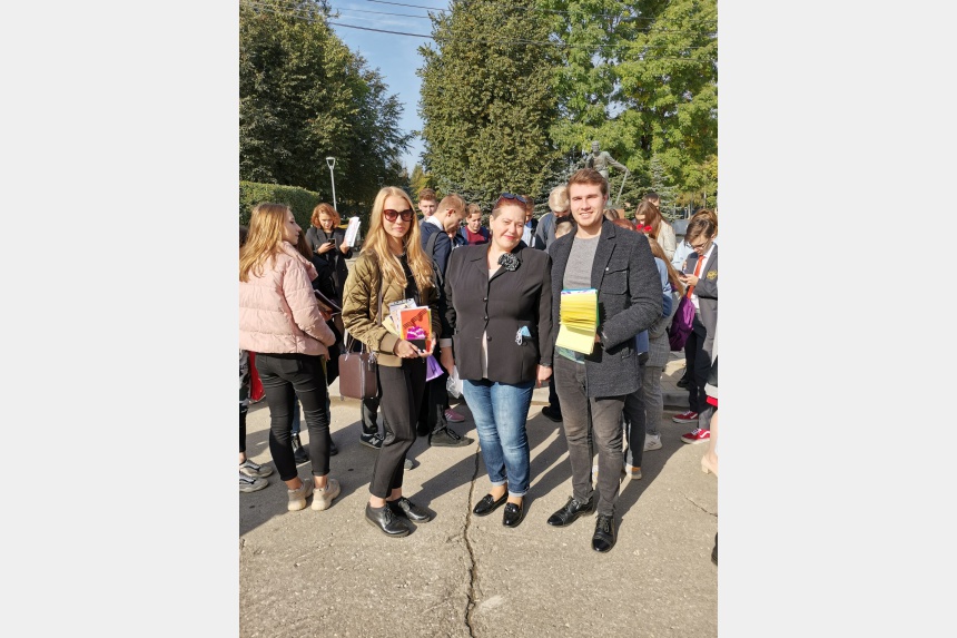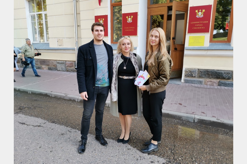 25 сентября, в рамках городской акции «Я помню, я горжусь!», в самых оживленных местах: в парке Блонье, на площади Ленина, в Сквере памяти героев – старшеклассники школ города и члены Молодежной администрации Смоленска раздавали ветеранам, жителям и гостям областного центра поздравительные открытки и цветы.