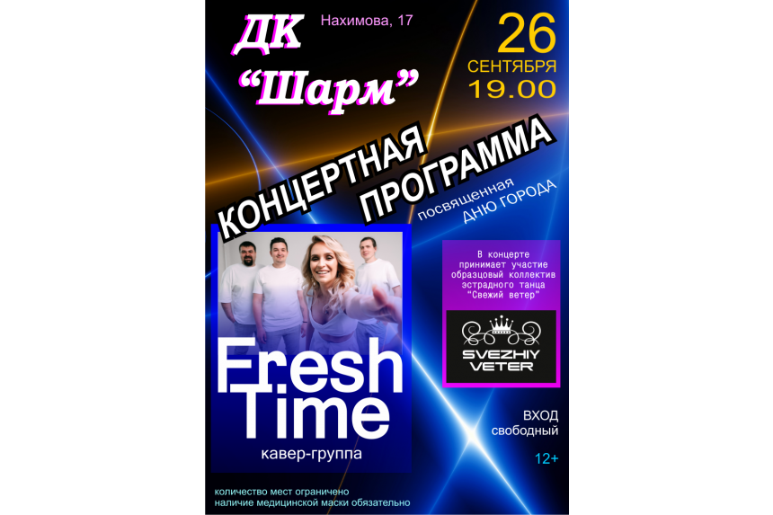26 сентября 19:00 – программа для молодежи «Fresh Time»