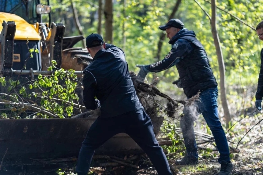 Глава города Александр Новиков вместе со своими заместителями, сотрудниками Администрации города и Правительства Смоленской области, жителями Смоленска очистили территорию возле парка «Соловьиная роща» от мусора и веток, спилили поросль.