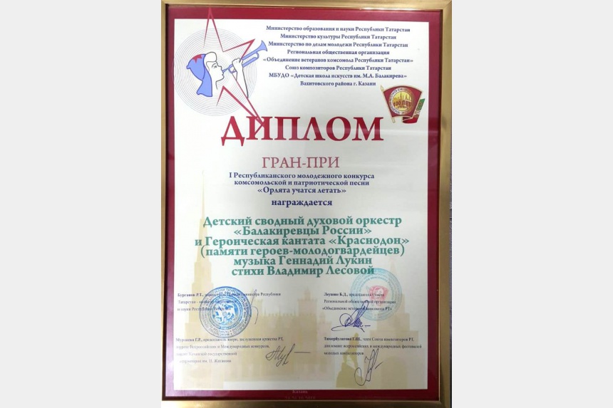 Гран-при конкурса завоевал сводный духовой оркестр российских школ искусств имени М.А. Балакирева «Юные балакиревцы России» в составе воспитанников детских школ искусств Москвы, Санкт-Петербурга, Тольятти, Петрозаводска, Казани, Смоленска, Ахтубинска, Луганска и Краснодона.