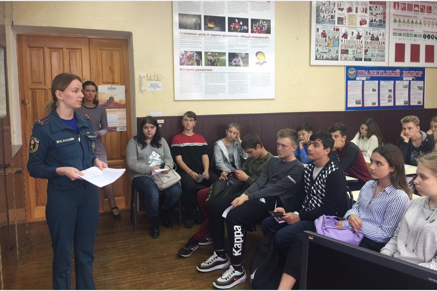 Государственный инспектор по пожарному надзору управления надзорной деятельности Главного управления МЧС России по Смоленской области Дарья Синицына рассказала представителям дружины юных пожарных Смоленска об истории развития пожарной охраны в нашей стране, ознакомила с причинами возникновения пожаров, противопожарным режимом в быту, школе, общественных местах. После теоретической подготовки ребятам были выданы задания для тестового контроля.