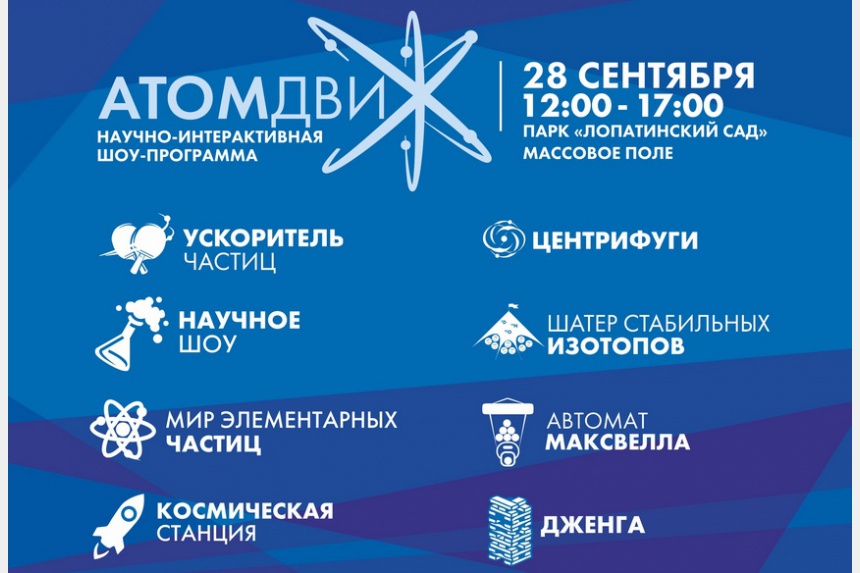 Гостей мероприятия ждут гигантский автомат Максвелла, музыкальный флешмоб, огромные шашки «Мир элементарных частиц», активные игры «Ускорители частиц», «Центрифуги», космическая ракета и многое другое.