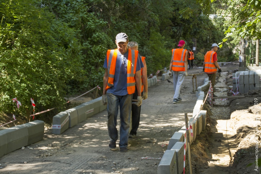 Во дворах домов №№ 53/11, 55, 55а по ул. Кирова и № 9 по ул. Памфилова демонтировано старое асфальтовое покрытие, устанавливаются бортовые камни.