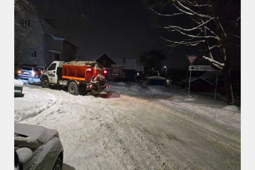 Работы ведутся непрерывно, ночью основной упор техники направлен на вывоз снега. Круглосуточно продолжается очистка тротуаров, переходов, остановок и дворов.