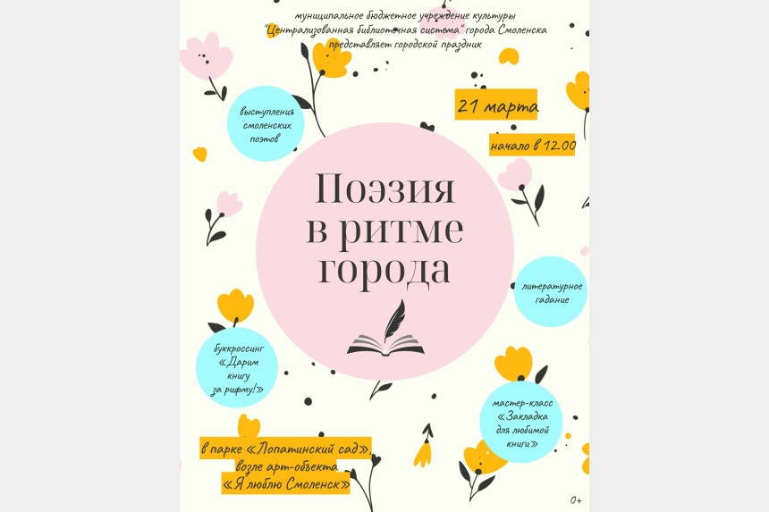 21 марта в Лопатинском саду, возле арт-объекта «Я люблю Смоленск», состоится городской праздник «Поэзия в ритме города».