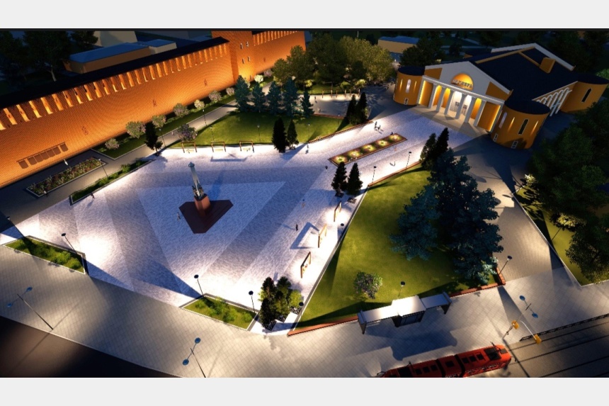Также планируются замена освещения, установка малых архитектурных форм, архитектурно-художественной подсветки крепостной стены и памятника, озеленение территории.
