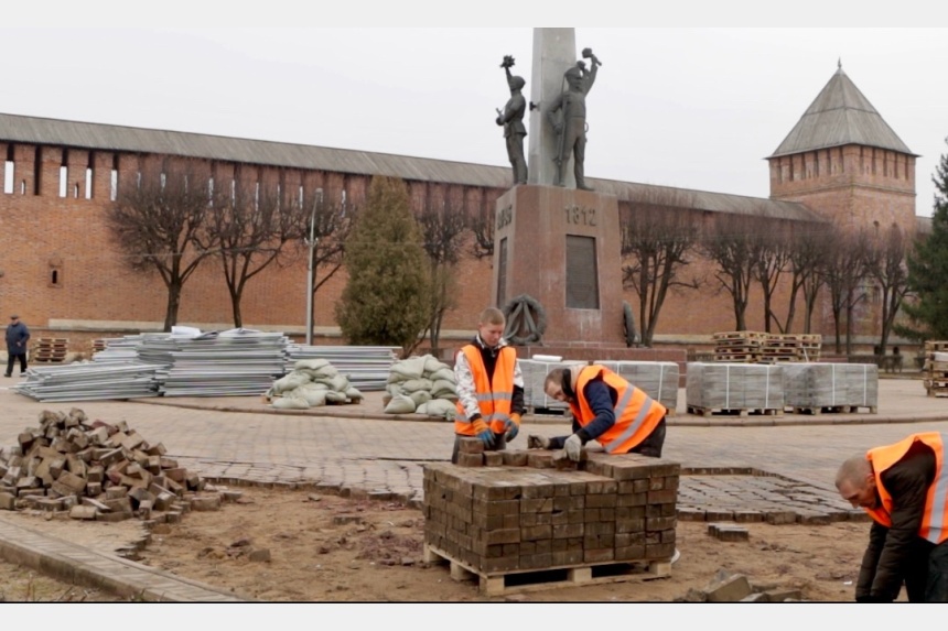 На территории вокруг памятника «Защитникам и освободителям Смоленска», расположенного напротив кинотеатра «Октябрь», предстоит большой объем работ. Они включают в себя полную замену основания и покрытия площадью более 8 тыс. кв. м.