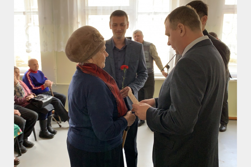 Среди награжденных ветеранов юбилейную медаль получила также участник войны Мария Васильевна Ларионова. В годы Великой Отечественной войны Мария Васильевна была санитаркой передвижного военного госпиталя. За храбрость, стойкость и мужество, проявленные в борьбе с немецко-фашистскими захватчиками, награждена орденом Отечественной войны 2 степени, медалями «За победу над Германией» и «За взятие Кенигсберга».