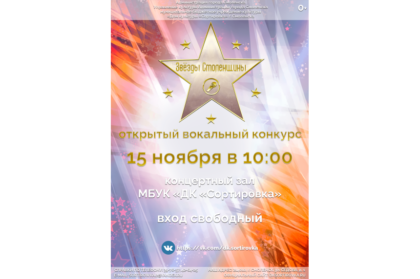 На праздник эстрадной музыки «Звёзды Смоленщины», который состоится в концертном зале Дома культуры «Сортировка» 15 ноября, приглашаются все желающие.