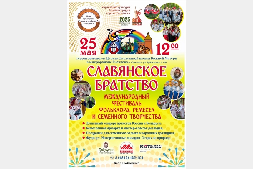 В программе – выступления народных коллективов из Смоленска, области и Беларуси, включая хедлайнеров – белорусский ансамбль «Припевка». На площадке «Гульба» гости смогут разучивать старинные хороводы и бытовые танцы под гармонь, участвовать в народных играх и забавах.