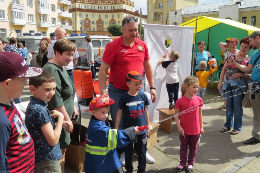 Дети ознакомились с образцами техники и пожарно-технического вооружения подразделений Главного управления МЧС России по Смоленской области, пообщались со специалистами ведомства, примерили одежду пожарного, приобрели навыки тушения пожара при помощи огнетушителей.