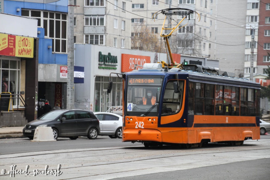 Трамваи №1 и 2 следуют до улицы Багратиона, а №3 и 4 до железнодорожного вокзала.