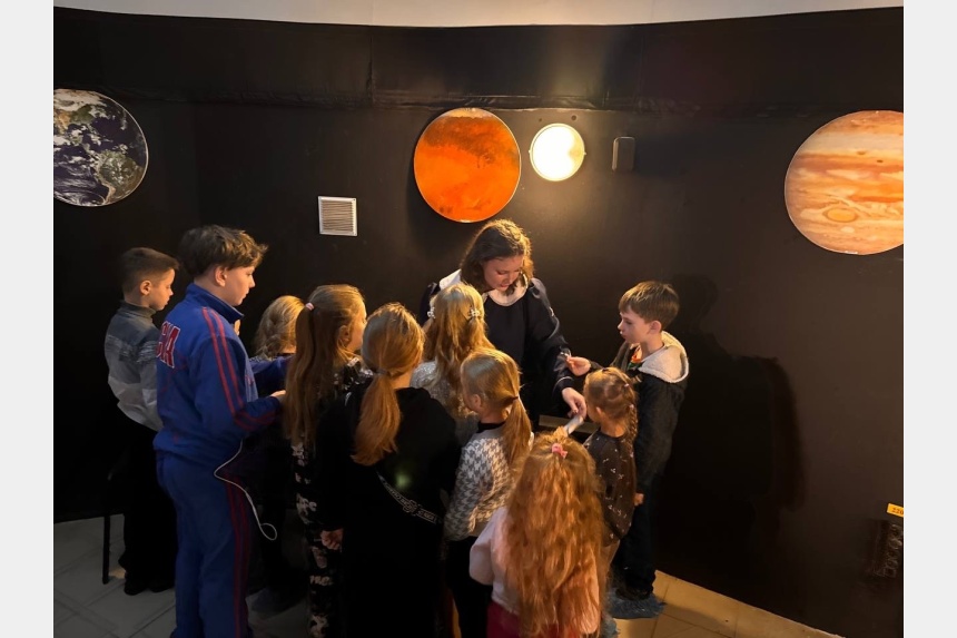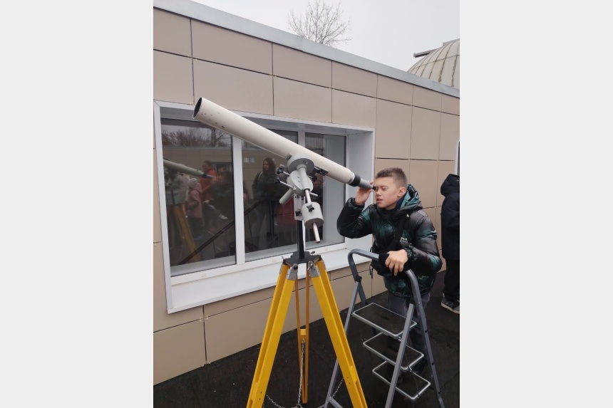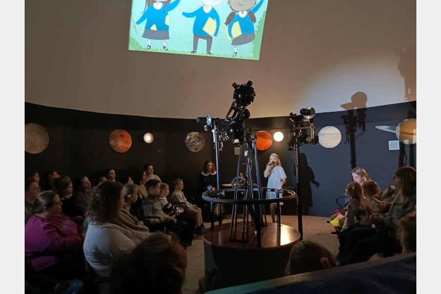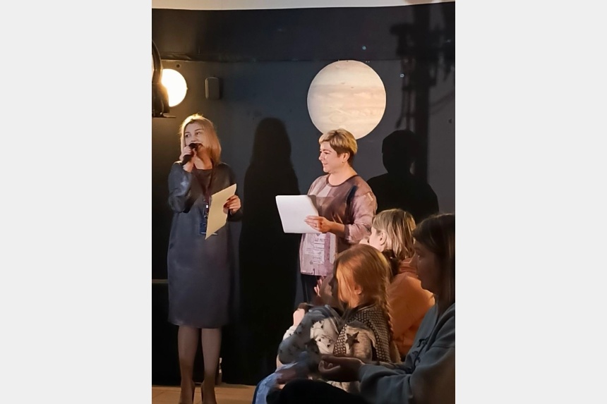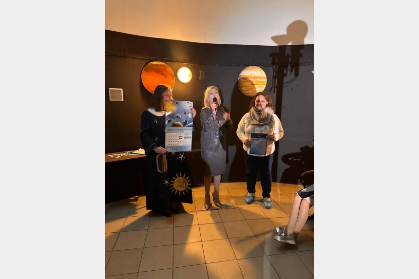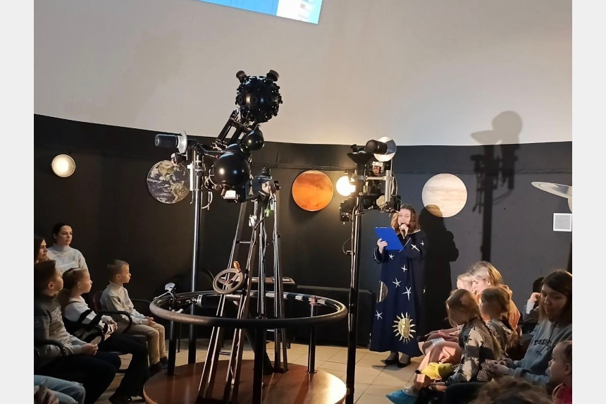 В первой части праздника была организована работа астрономической площадки, на которой все желающие смогли ознакомиться с телескопами и понаблюдать за дневными объектами. В фойе работала выставка «Родом из космоса».