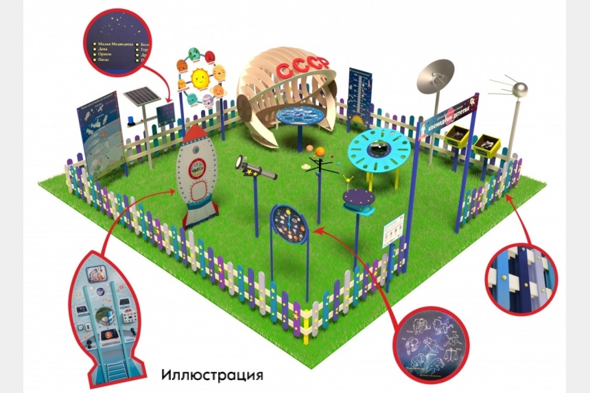 Каждая площадка будет оснащена порядка двадцатью научными развивающими элементами, которые помогут юным смолянам исследовать и изучать вселенную прямо на игровой территории.
