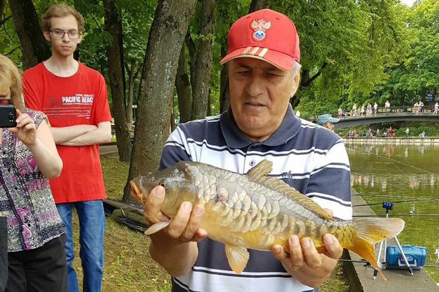 У каждого рыбака была только одна удочка, а пойманный улов после контрольного взвешивания отпускался обратно в пруд.