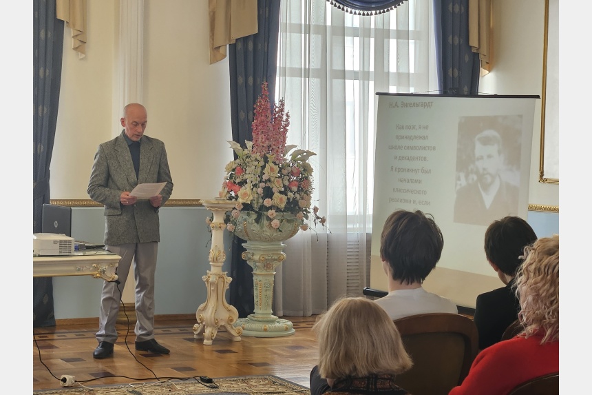 В Управлении ЗАГС Администрации города Смоленска в рамках проекта «Смоленский текст: культурно-просветительская инициатива» известный смоленский краевед, кандидат филологических наук, доцент Смоленского государственного института искусств Дмитрий Бутеев прочитал в историческом месте лекцию «Смоленщина в поэзии и прозе Николая Энгельгардта», посвященную историку, публицисту, поэту, автору известных исторических романов.