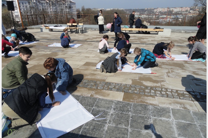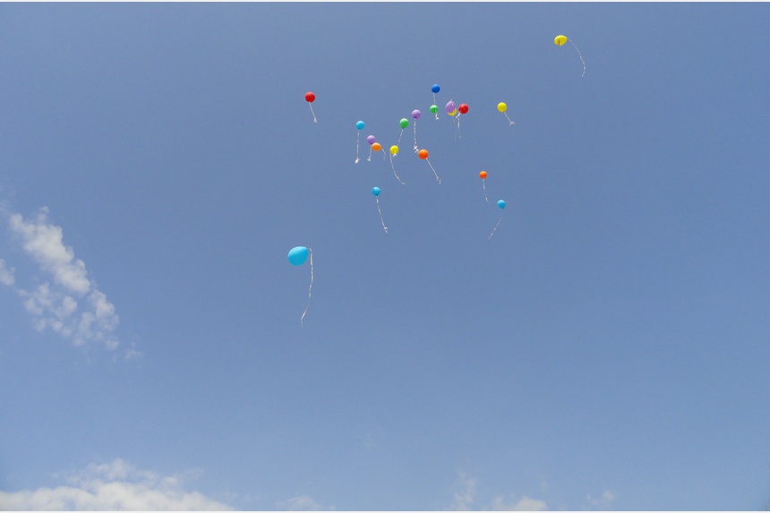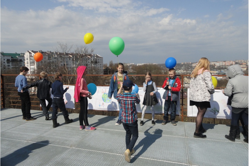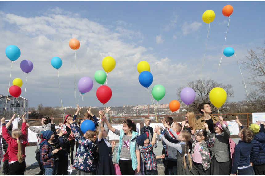 В конце мероприятия его участники запустили в небо разноцветные воздушные шары с прикрепленными к ним листками со словом «МИР».
